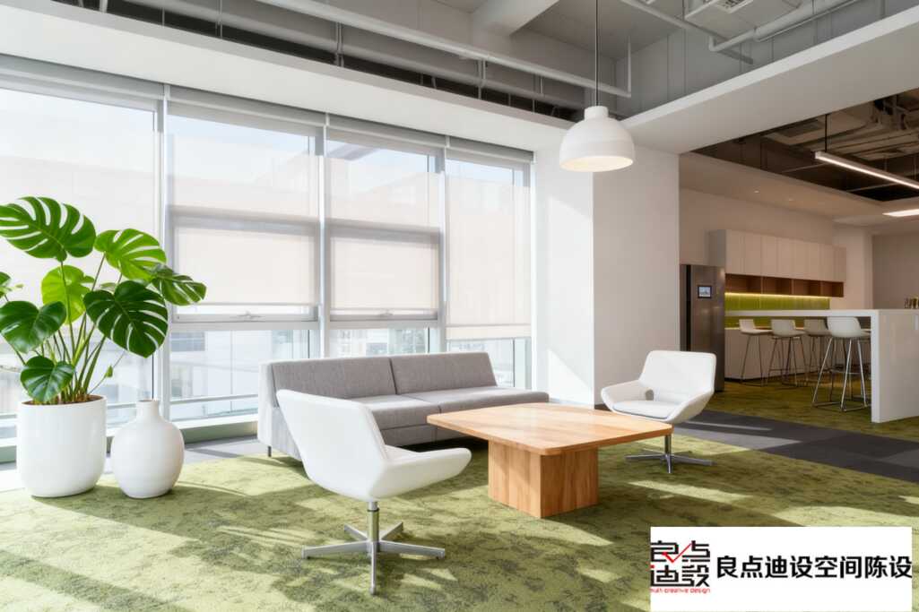 一走進這個辦公室的休閑區,就像闖進了城市里的小森林~淺木色的墻面溫柔又溫暖,搭配上大片的玻璃隔斷,整個空間通透得不行,光線灑進來的時候,連空氣都變得輕盈啦~還有那幾株生機勃勃的綠植,往角落一放,瞬間就把沉悶的職場感驅散,工作累了看看這些綠意,眼睛和心情都被治愈咯~