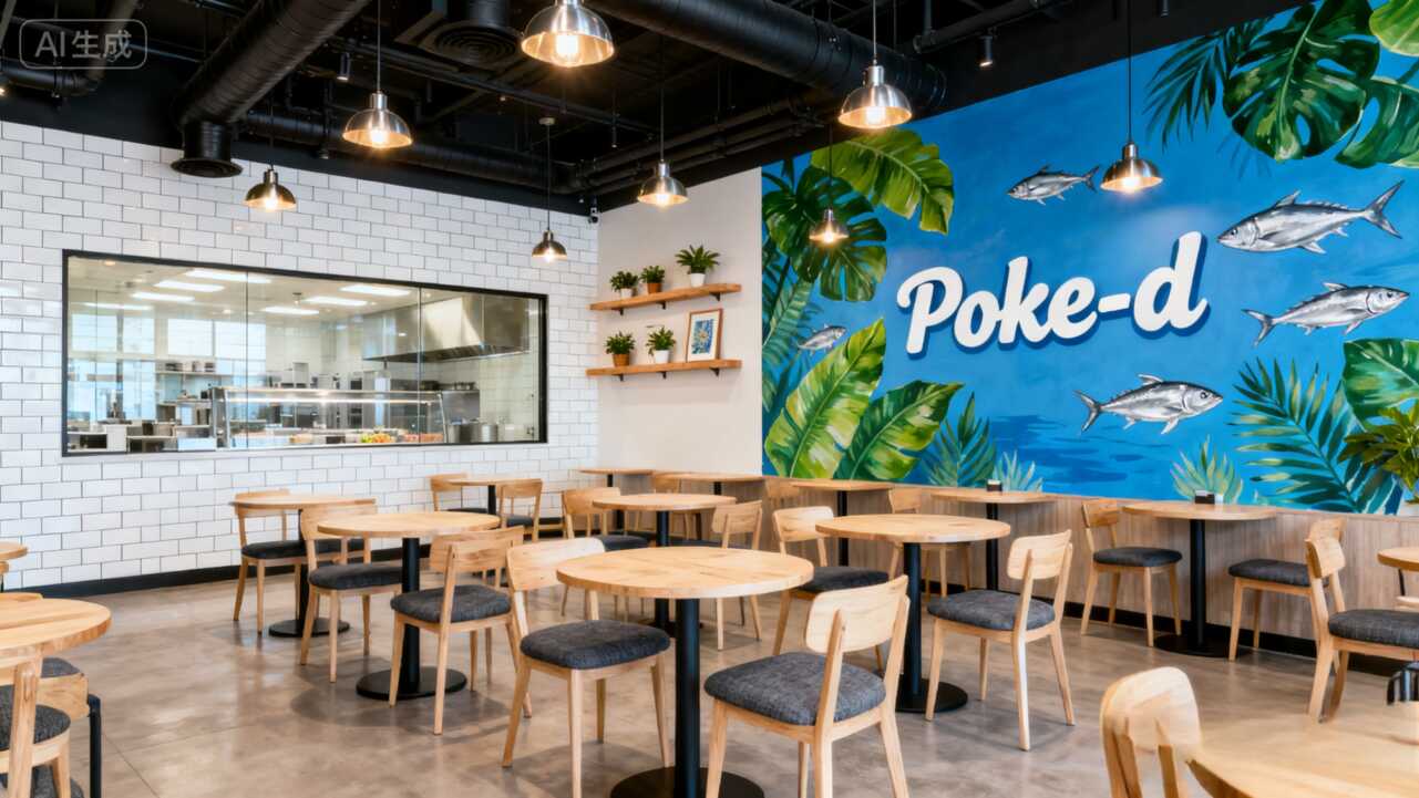 寶子們,今天挖到的這家Poke-d餐廳,***是「靠一面墻封神」的典范!誰說裝修非得大動干戈?人家光靠一幅海洋風壁畫,就直接把氛圍感拉到夏威夷海邊了!走,帶你看看這套軟裝是怎么用巧思省大錢的~