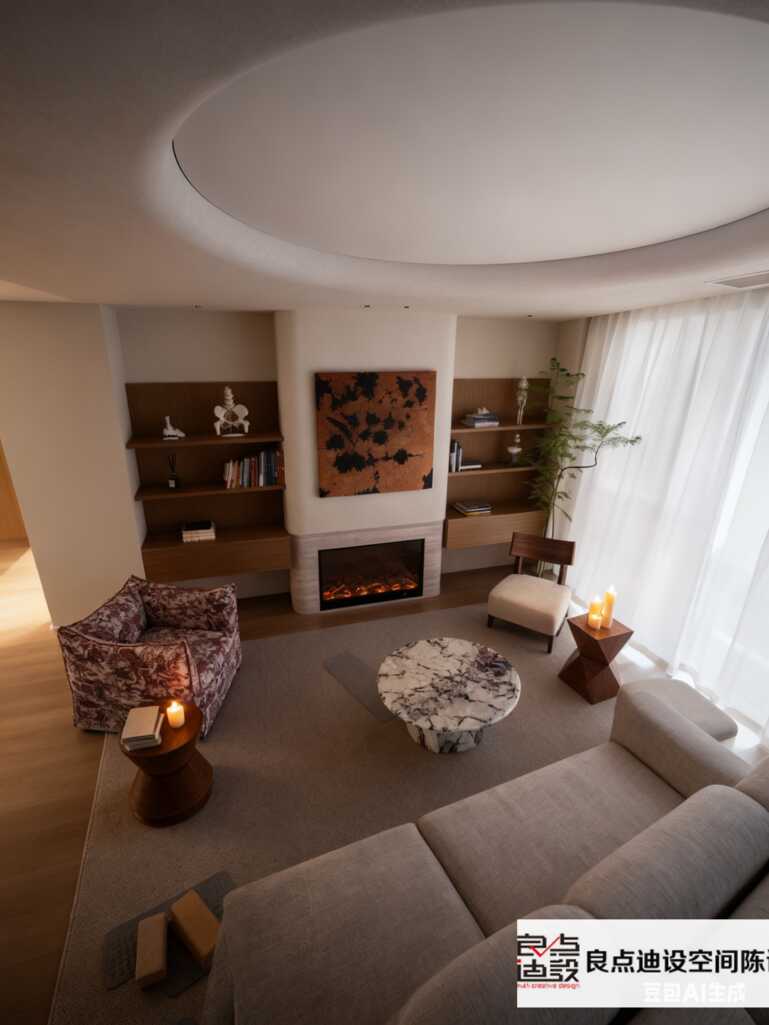 寶子們!看到這張設計圖我直接尖叫——圓形穹頂+壁爐+藝術畫,這真的是普拉提房不是電影場景嗎?!@良點迪設空間陳設 這次玩這么大,直接把法式優雅搬進健身房了!