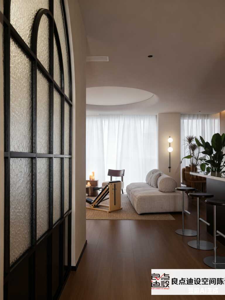 寶子們!刷到這組普拉提房實拍圖直接挪不開眼~拱形磨砂玻璃配奶油色系,簡直長在我的審美點上!@良點迪設空間陳設 這次又出神仙作品!