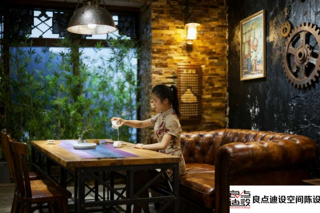左邊那紅色流蘇窗簾,復古味兒沖鼻子了!紅色熱烈,流蘇靈動,和深綠沙發撞色撞得恰到好處,視覺沖擊力強但又不扎眼。旁邊擺的綠植,像是龜背竹或者散尾葵,給空間添了抹生機,平衡了奢華調調的厚重感,讓整個環境活了起來。右邊角落的老式留聲機和雕塑,細節控看到***狂喜。留聲機擺那兒,好像下一秒就能放出黑膠爵士樂;雕塑選品有品味,默默提升格調。這些小物件不是擺設,是氛圍組核心成員,讓茶樓不止能喝茶,還能發呆做夢。