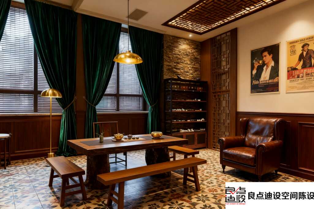 復(fù)古茶室軟裝設(shè)計(jì)教科書丨“皮革+老木頭”的質(zhì)感搭配絕了!