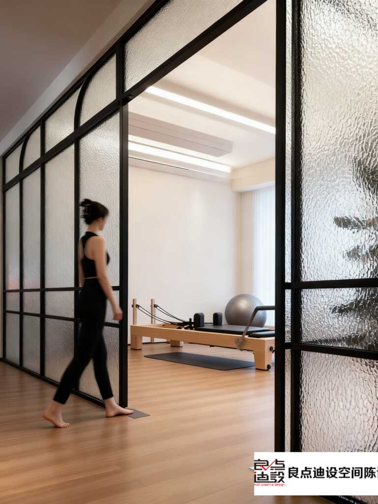 一走進這個空間,就被那種溫柔又有力量的氛圍拿捏了~墻面選的是那種暖暖的米色調,搭配上黑色線條的拱形大窗戶,復古感拉滿的同時,又讓整個空間顯得超有層次感~陽光透過磨砂玻璃灑進來,落在瑜伽墊和普拉提器械上,光影交錯的樣子真的美到窒息??