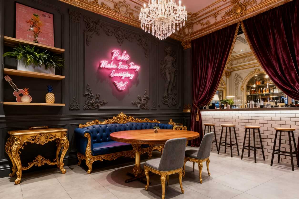 拿捏住了!這家"Rose"餐廳的復古奢華風軟裝設計,粉金配色直接封神!