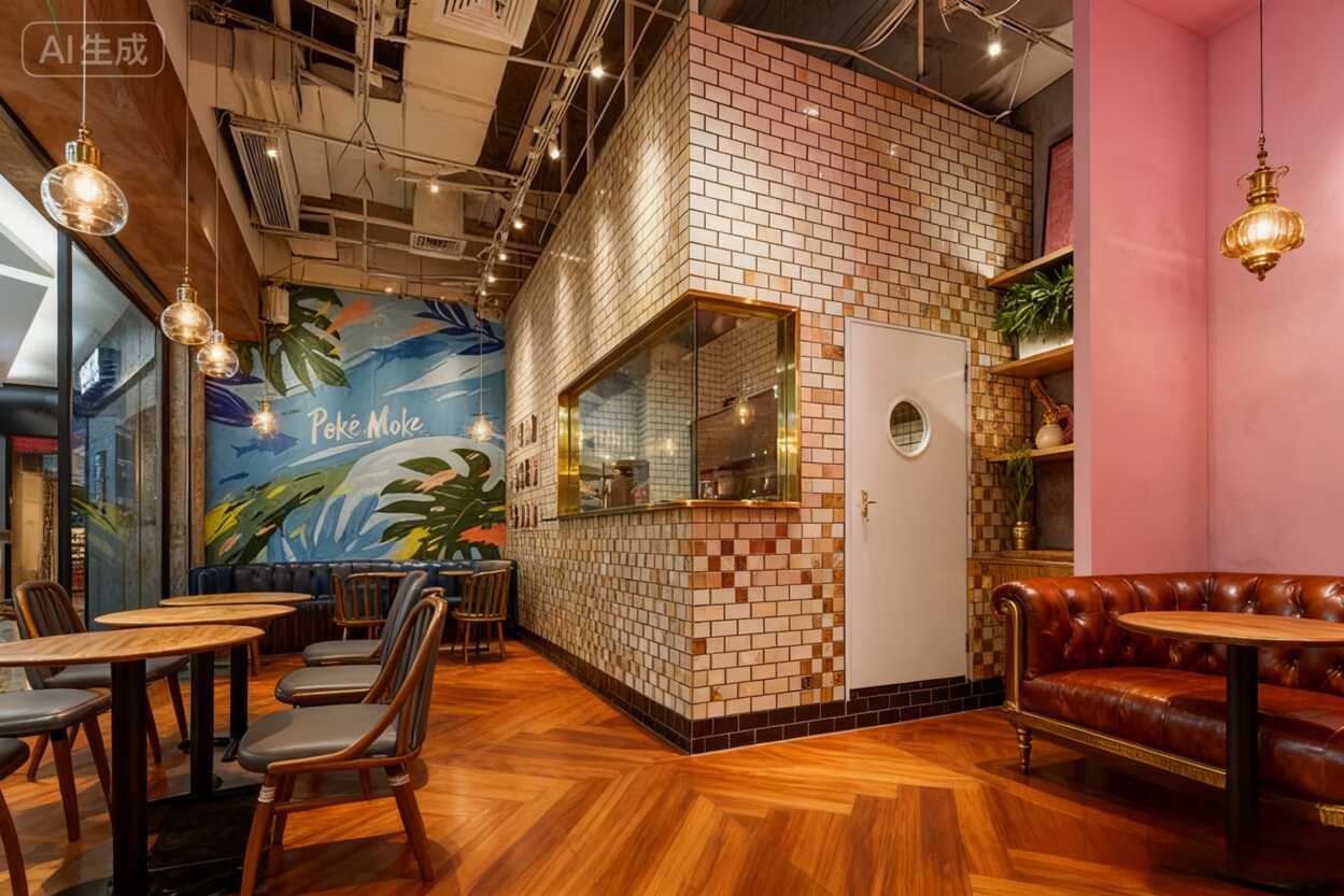 ?? 這家Poke店軟裝設計太會了!灰墻木架+治愈粉海報,進去就不想走!