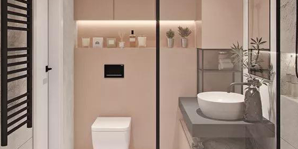 其實(shí),我們完全可以將儲(chǔ)物壓力向墻面轉(zhuǎn)移。只要在馬桶后方打造一個(gè)柜子+壁龕的組合式設(shè)計(jì),就可以得到額外的收納空間。